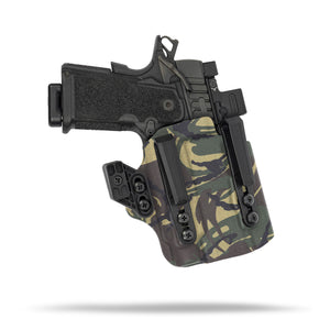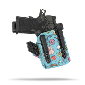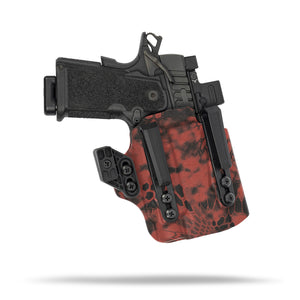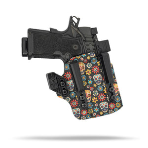 LAS Concealment offers a wide range of Kydex holster colors, ranging from subdued black and gray to vibrant red, orange, blue, and green. Of course, we have your favorite military-inspired hues, including flat dark earth (FDE), coyote brown, and olive drab green. You can also choose from camouflage patterns like MultiCam and Hexcam or Recon patterns that resemble a topo map. For the truly bold, we even have wild and colorful prints such as Sugar Skull and Angry Donut.